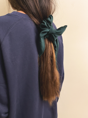 The Bow Scrunchie, cut from a silk blend, offers strong personality to your tied-up look. It is designed to be a striking accessory that takes less than a minute to apply – perfectly accompanying the NJ Essentials styles