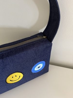 The ‘Don’t Worry, Be Happy’ Bag is tailored to be the most practical size for fashion and functionality. Our first ever bag drop is cut into a classic rectangle shape with two inner pockets. Made to wear for everyday life during all seasons, this piece features a denim base with a unique combination of embroideries from our “Head in the Clouds” collection illustrations. Pair it with the fun NJ Essentials looks to run errands or chill in.
