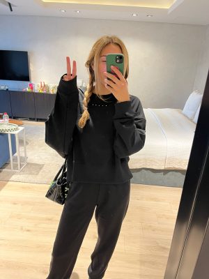 The Flare Sweater is cut from 100% cotton fleece for a relaxed winter cozy-chic look. Designed with a wide crew-neck frame, dropped shoulders and an extra-loose fit, it’s shorter in length than our Unisex Sweater but longer than our classic crops. Its new special feature draws exaggerated ribbing along the bottom hem. Pair it with the matching flared sweatpants and sneakers.