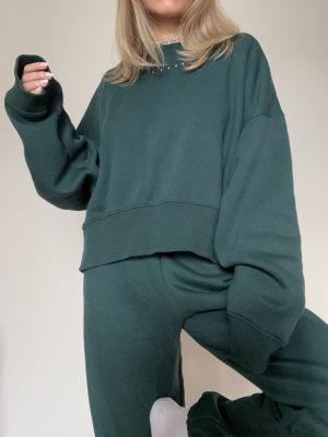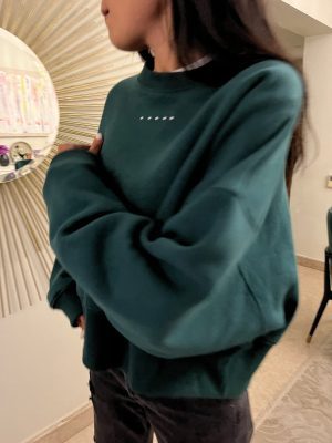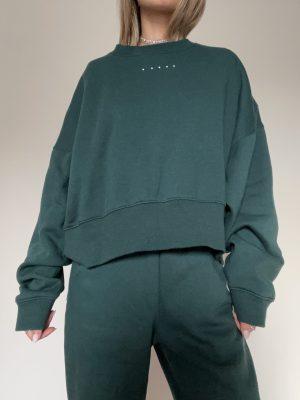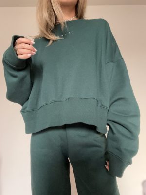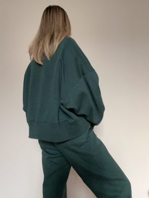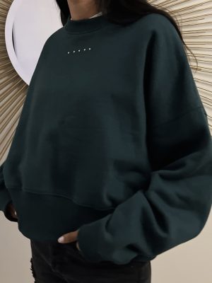 The Flare Sweater is cut from 100% cotton fleece for a relaxed winter cozy-chic look. Designed with a wide crew-neck frame, dropped shoulders and an extra-loose fit, it’s shorter in length than our Unisex Sweater but longer than our classic crops. Its new special feature draws exaggerated ribbing along the bottom hem. Pair it with the matching flared sweatpants and sneakers.