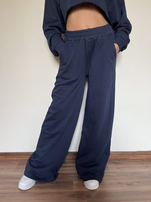 The Flare Sweatpants in navy are cut from 100% cotton french terry. They have a high-rise, elasticated waistband and wide legs that fall to raw hems. Wear them at home or on casual days out with one of the matching sweaters and sneakers.