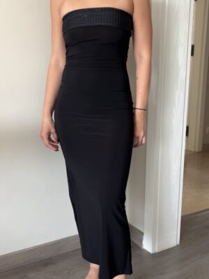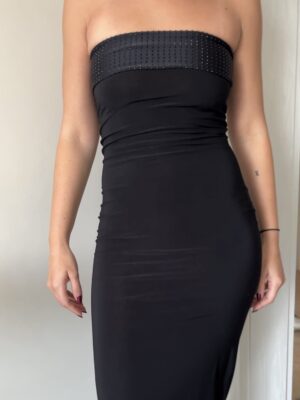 Slip into something more comfortable, for a change. This glittery one-piece version of our best-selling Gemini Top is crafted from premium, stretchy fabric. It effortlessly hugs your body for a flattering fit. The fold-over design allows you to add a pop of sparkle, making it versatile and suitable for the evening.