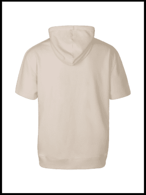 The Half-Hoodie in cappuccino beige is cut from 100% cotton french terry. The design features a relaxed fit with short sleeves, a hood and a drawstring, made to pair with the matching pocketed sweatpants.