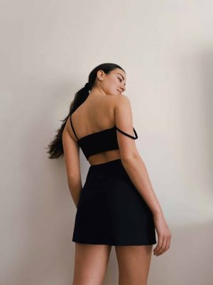 The bandeau top features a classic cropped fit and spaghetti straps. Cut from a matte black satin weave and featuring an elastic on the back, the Luca Bandeau is made to hug your body just right. Style it under a blazer or with our William Skirt for a cheeky night out.