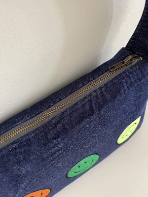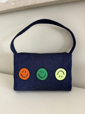 The ‘Odd One Out’ Bag is tailored to be the most practical size for fashion and functionality. Our first ever bag drop is cut into a classic rectangle shape with two inner pockets. Made to wear for everyday life during all seasons, this piece features a denim base with a unique combination of embroideries from our “Head in the Clouds” collection illustrations. Pair it with the fun NJ Essentials looks to run errands or chill in.