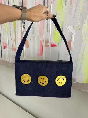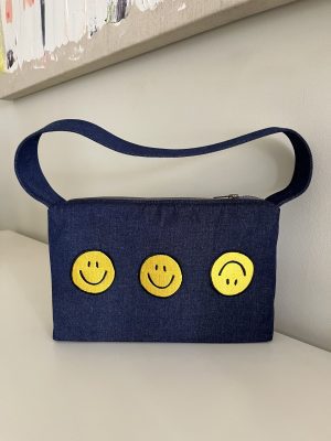 The ‘Odd One Out’ Bag is tailored to be the most practical size for fashion and functionality. Our first ever bag drop is cut into a classic rectangle shape with two inner pockets. Made to wear for everyday life during all seasons, this piece features a denim base with a unique combination of embroideries from our “Head in the Clouds” collection illustrations. Pair it with the fun NJ Essentials looks to run errands or chill in.