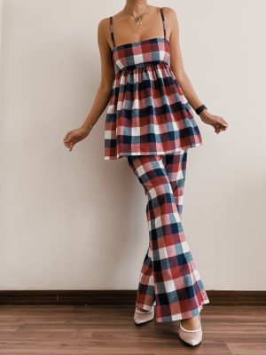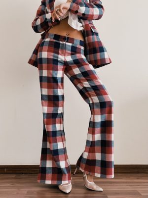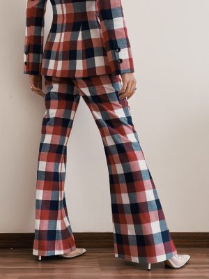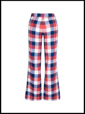 Tailored from wool, the red and blue checked pants give cozy and funky uplift to your winter look. It features a medium-low waist and a wide-leg trim. Comfortable, chic, and warm, pair it with one of our other plaid pieces to turn heads.