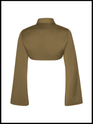 This super-cropped jacket features wide cuffs and a neat collar. The khaki green tone will go well with both bright colors or neutral shades. Wear it as a cooler alternative to a shawl.