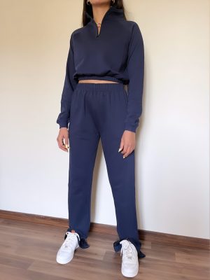 The Sorority Zip Sweats in navy are cut from 100% cotton french terry. It features zippers on the front of the ankles to adjust to your liking.