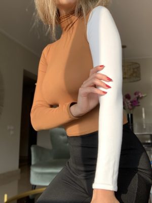 Made from sustainably collected organic cotton-jersey that feels so soft against the skin, this fitted turtleneck features a one-off white sleeve and can be worn with anything.