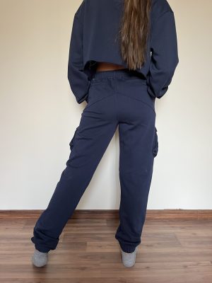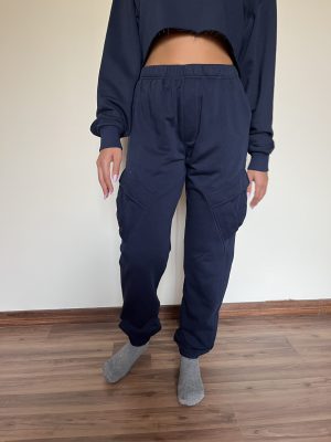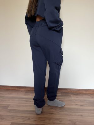 The Women’s Cargos in navy are cut from 100% cotton french terry. Made with a body-flattering silhouette, it features diagonal front pockets, back pockets and velcro flap leg pockets with covered elasticity at the waist and hems. Wear yours with one of the matching sweaters.