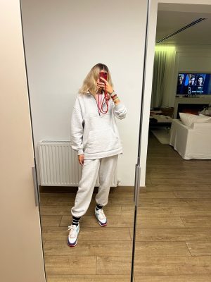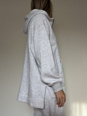 Our new Zip Hoodie features a wide and flowy fit, a high neck to be adjusted by a zipper, and a classic hood. It’s designed to have a super soft and breathable shape, and cut from an ultra-cozy 100% cotton fleece material. Pair it with our latest Basic Sweats for the full look.